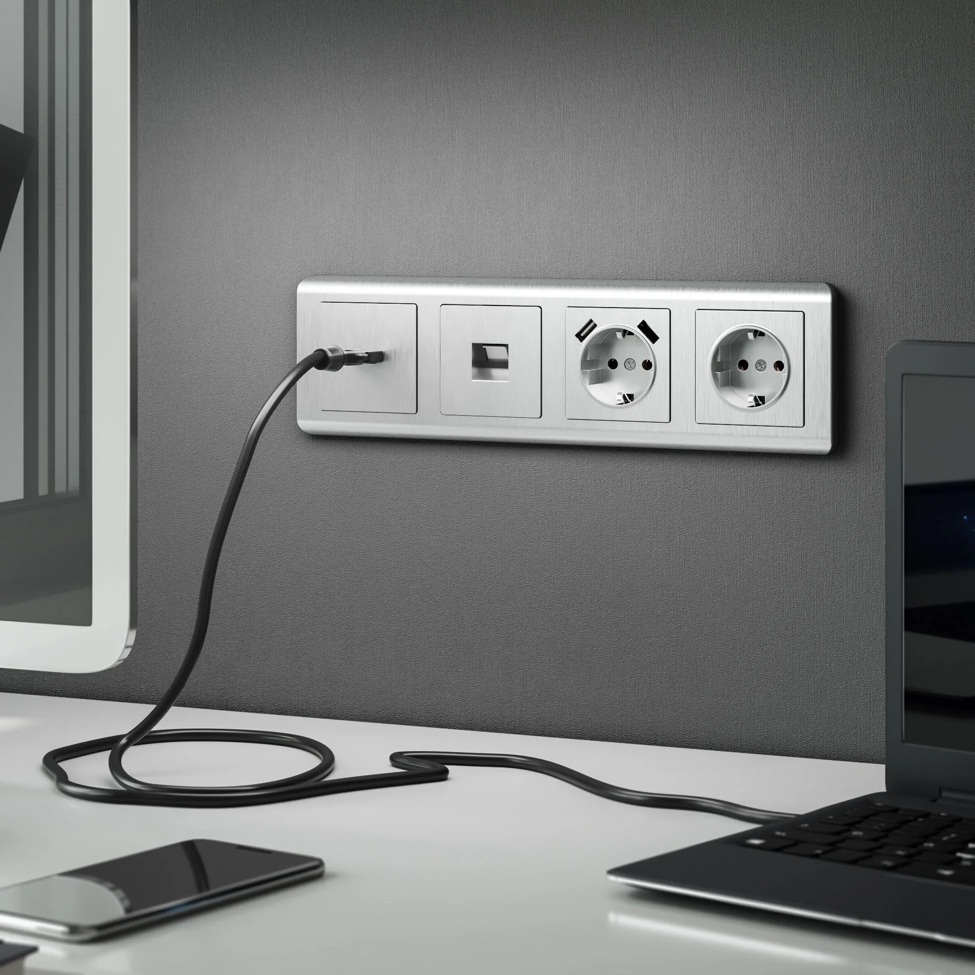 Накладка для розетки USB (cеребряный рифленый) W1179509