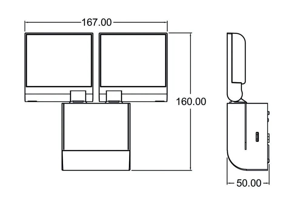 - Прожектор может поворачиваться на ± 20/45° по горизонтали и регулироваться на 70° вниз.