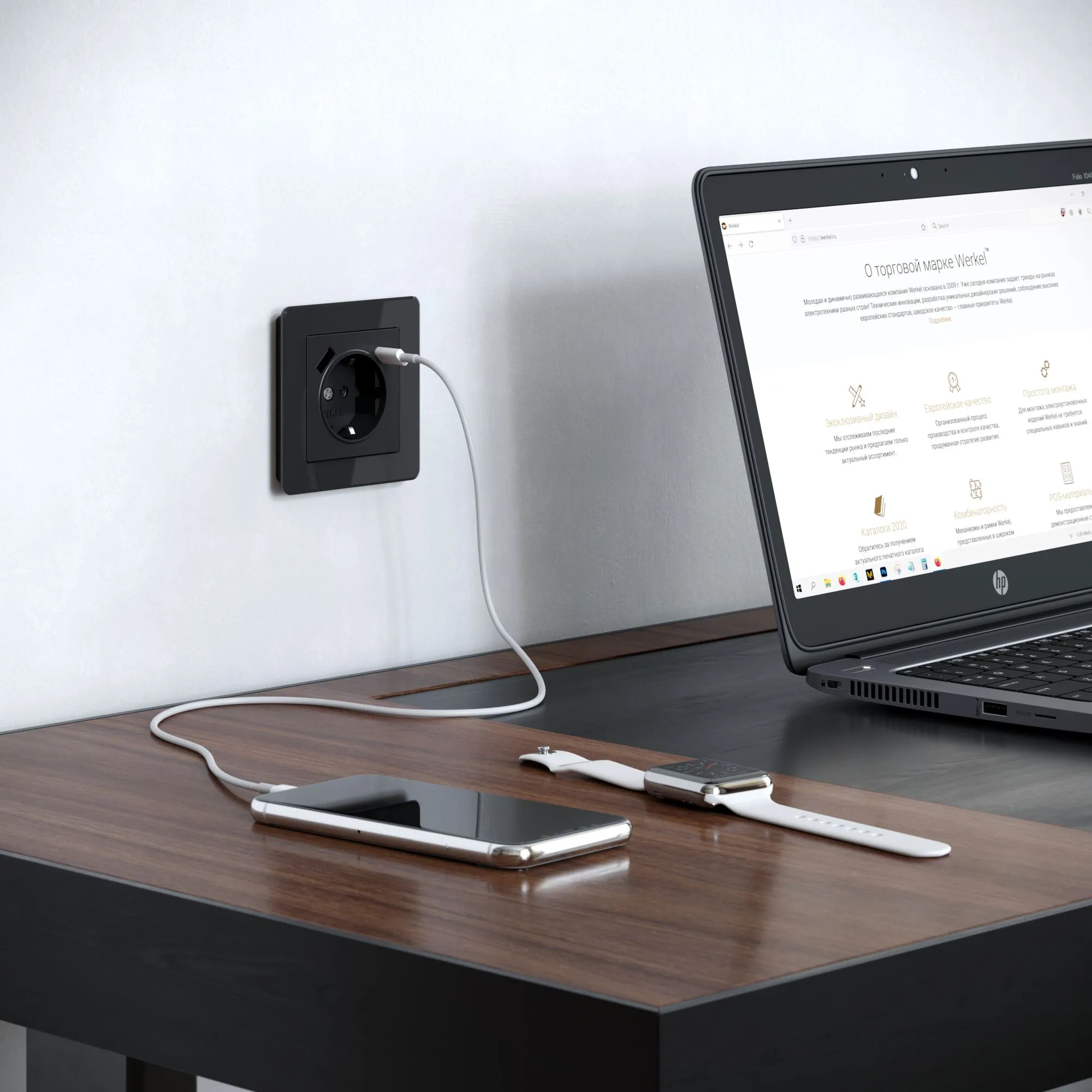 Коллекция представлена в классической цветовой гамме: белый, черный, графит и айвори. Рамки подходят ко всем встраиваемым механизмам Werkel.