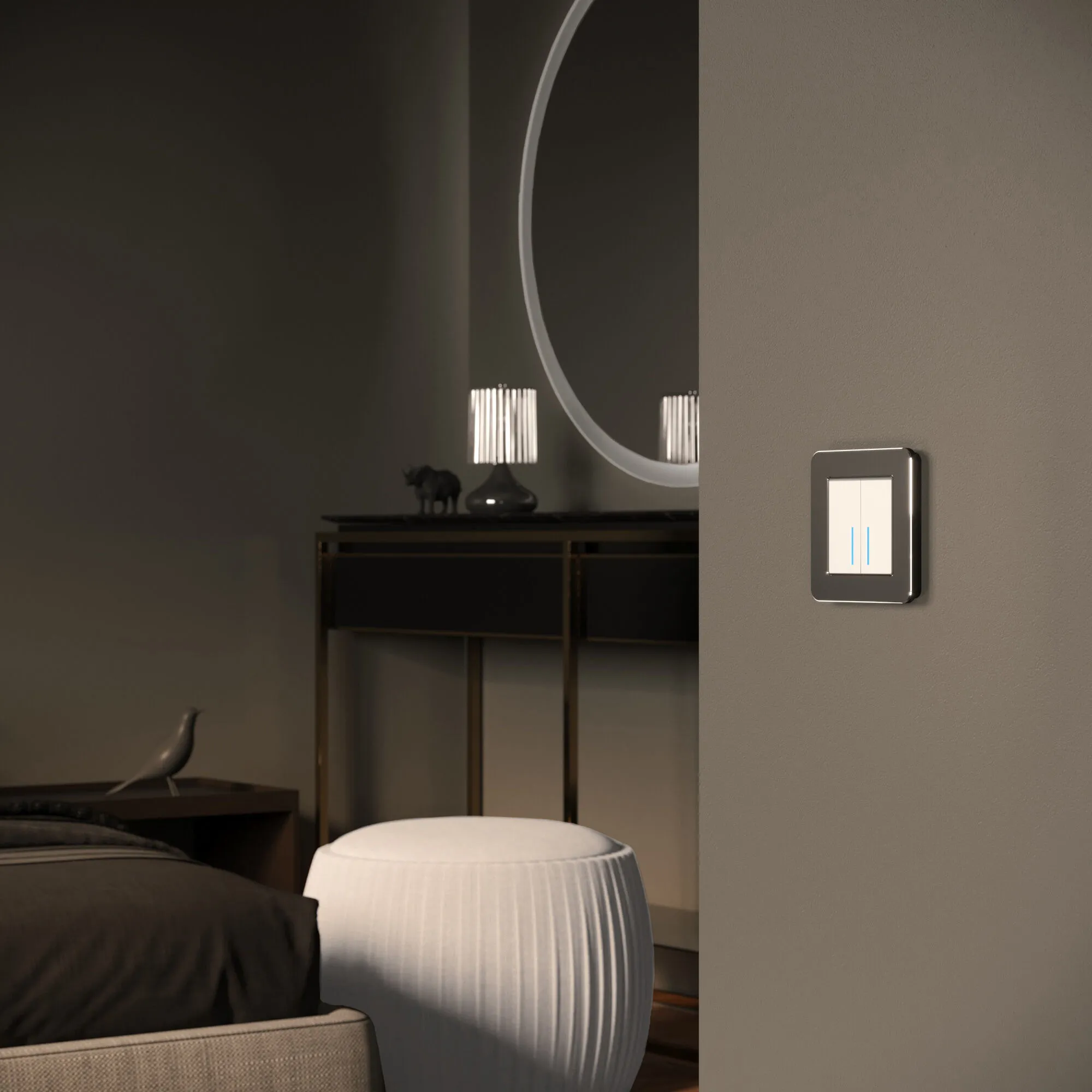Platinum — коллекция рамок из литого анодированного алюминия. Сатиновая поверхность с шероховатой фактурой и изящные акцентные фаски на гранях создают премиальный дизайн, который подчеркивается благодаря увеличенным размерам рамки — 95×95 мм.