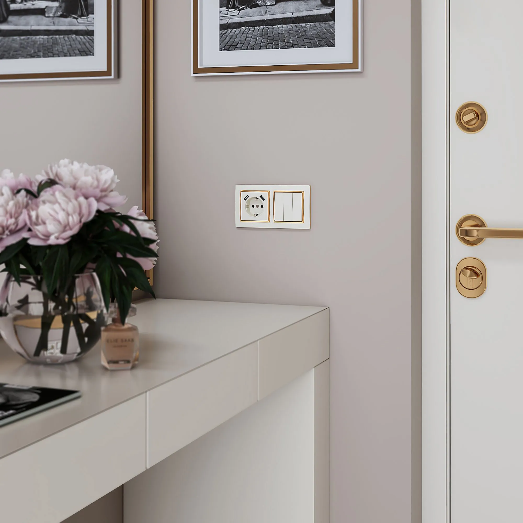 Рамка на 2 поста (слоновая кость/золото) W0021932