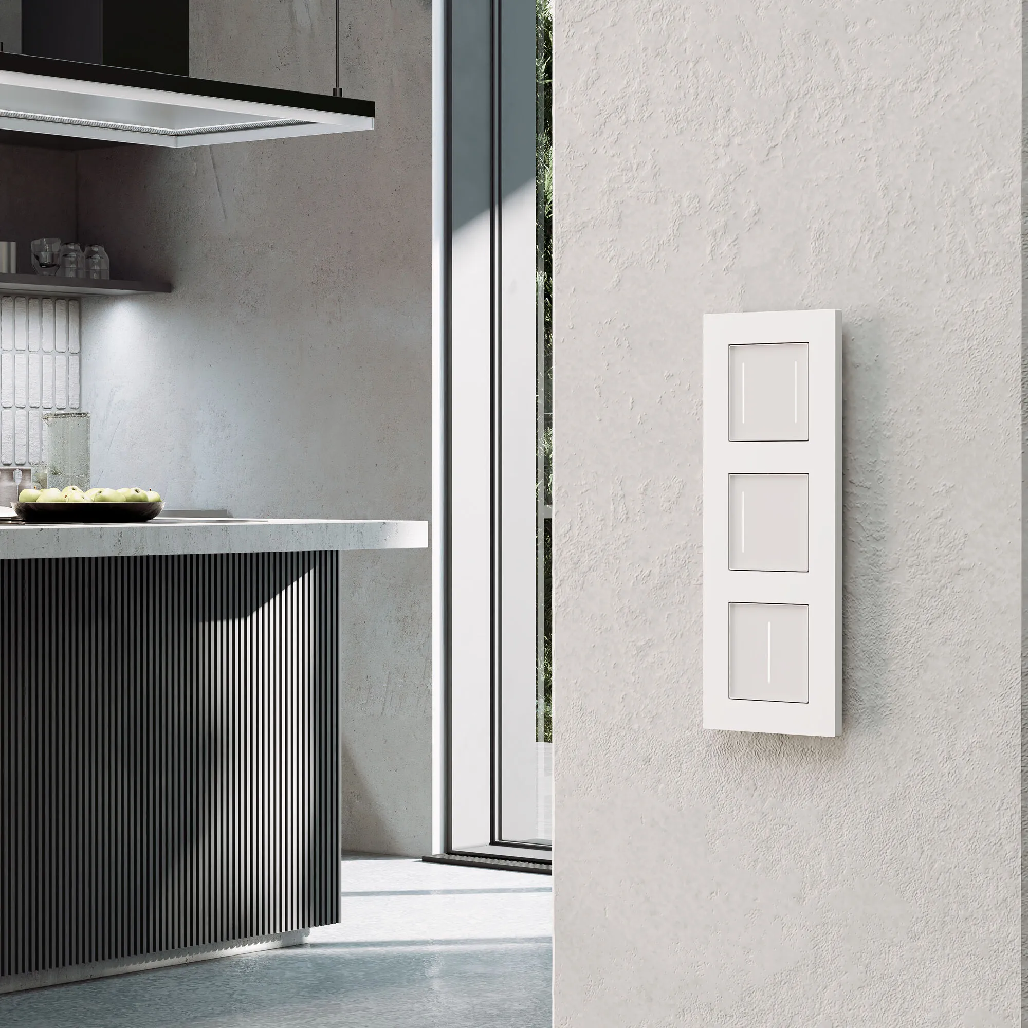 Серия Slab представлена моделями от одного до четырех постов. Рамки предназначены как для горизонтального, так и для вертикального монтажа. Коллекция совместима с любыми встраиваемыми механизмами Werkel.