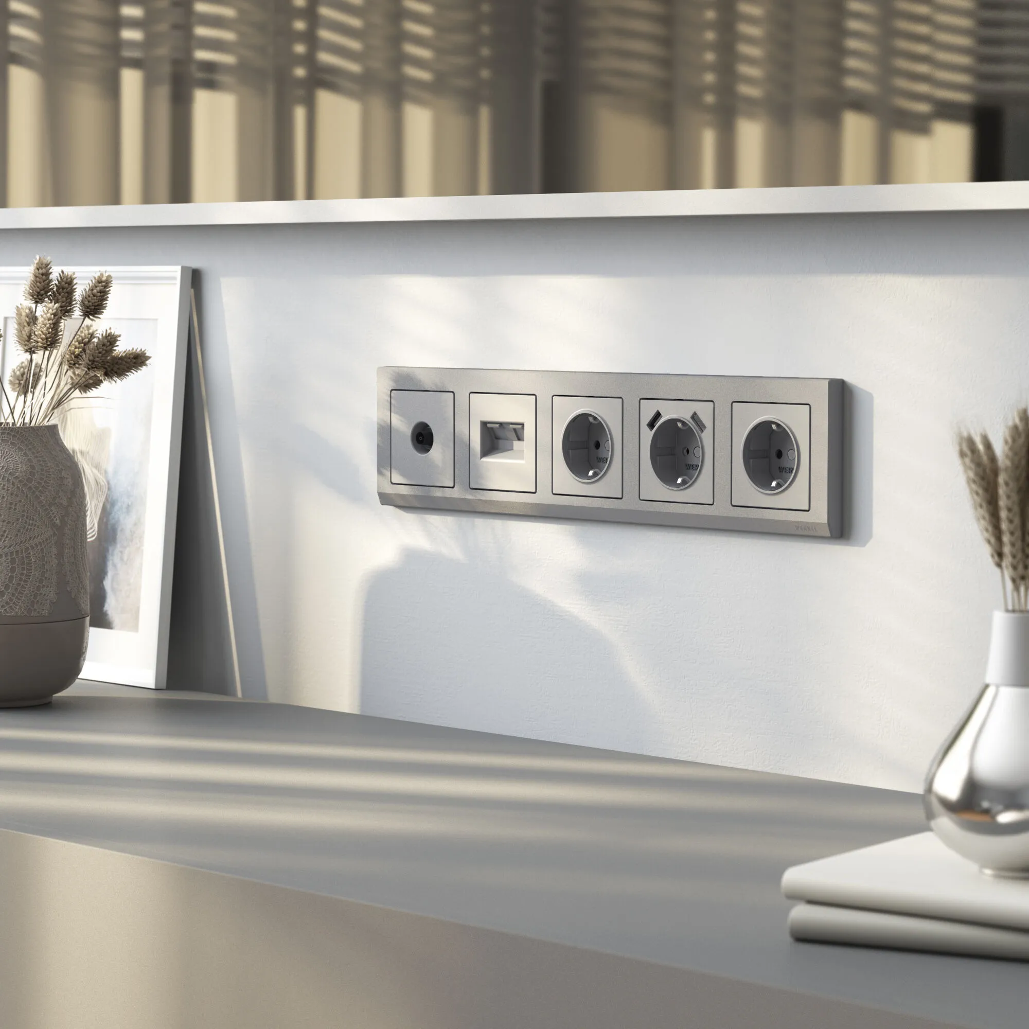 Серия Stark представлена моделями от одного до пяти постов, а также рамкой для двойной розетки. Коллекция совместима с любыми встраиваемыми механизмами Werkel.
