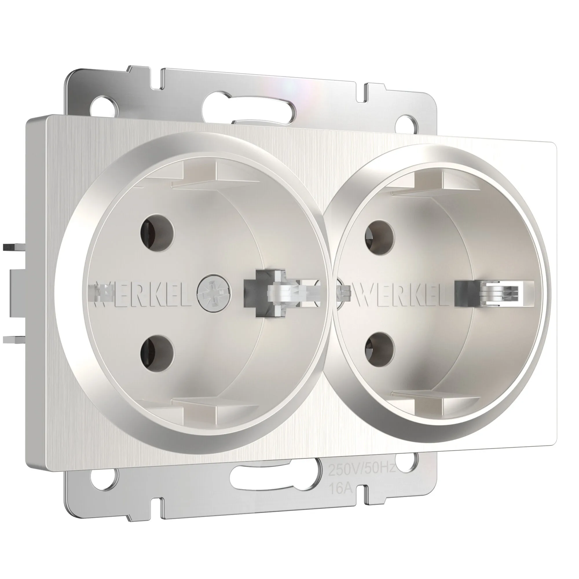 Розетка двойная с заземлением (перламутровый рифленый) W1172013