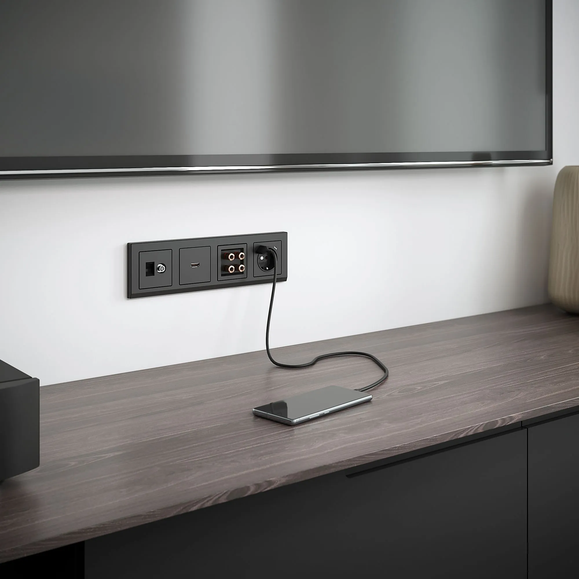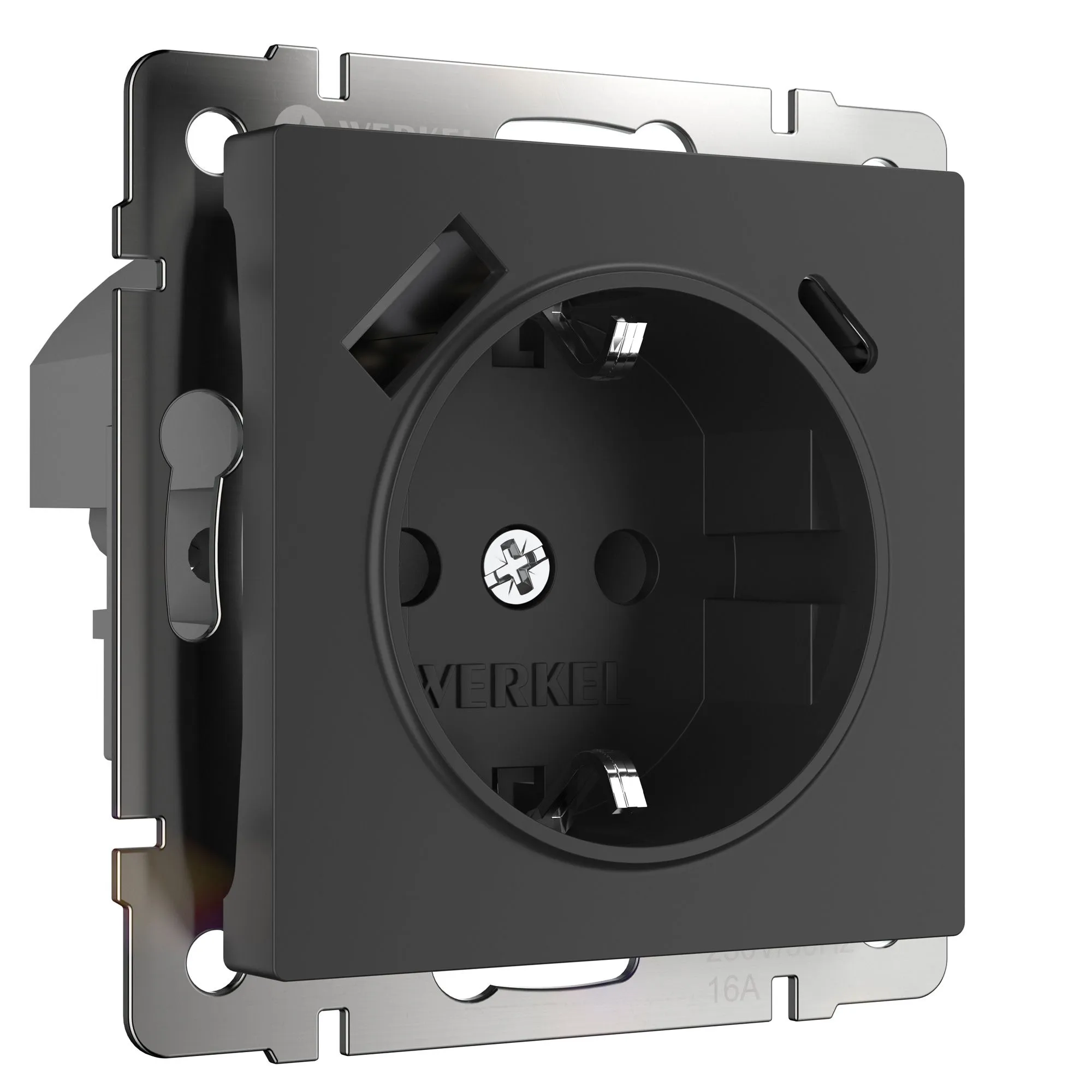 Розетка с быстрой зарядкой USB Type A+С черная (черный матовый) W1171708