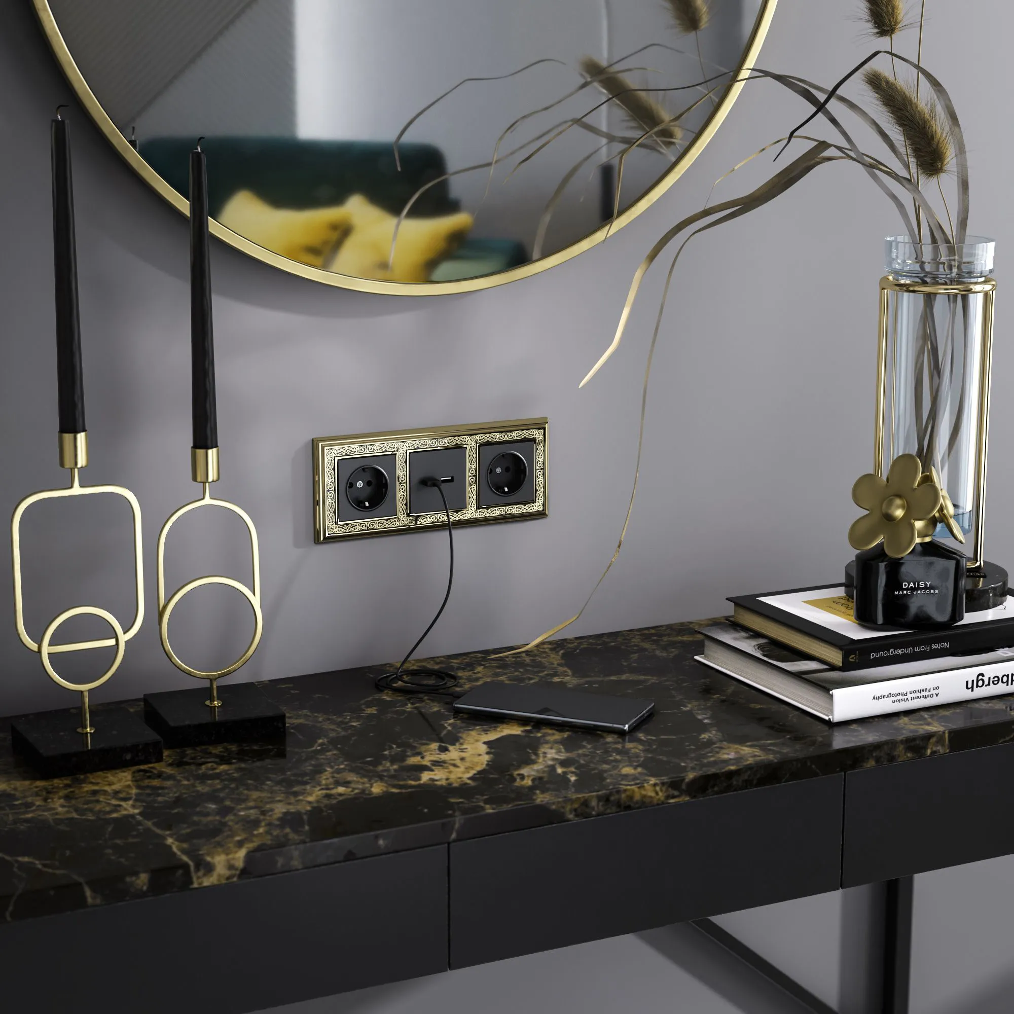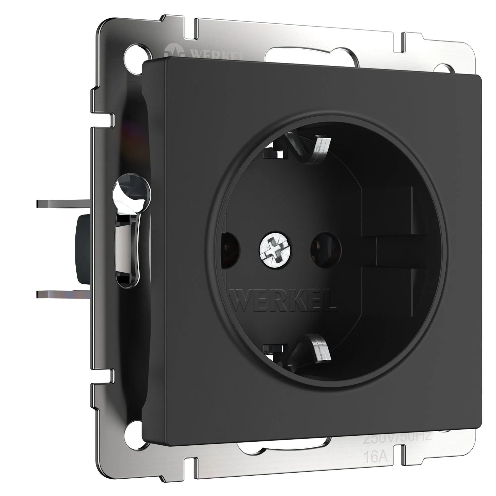 Розетка с заземлением и шторками (черный матовый) W1171108