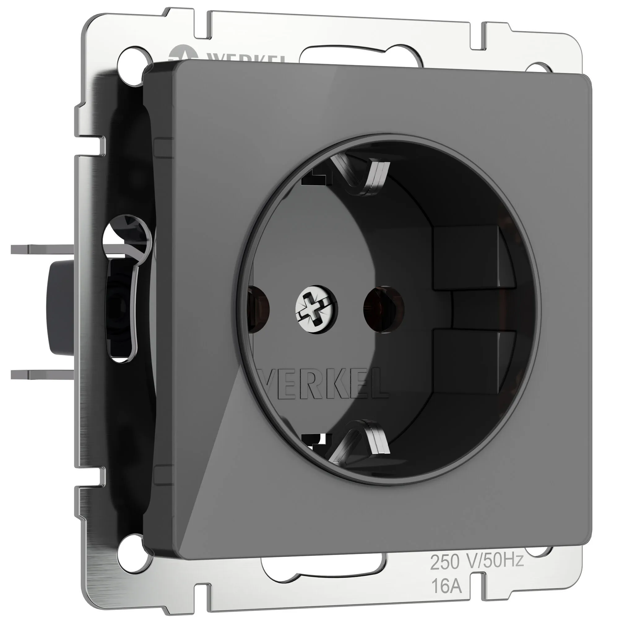 Розетка с заземлением и шторками (графит акрил) W1171144