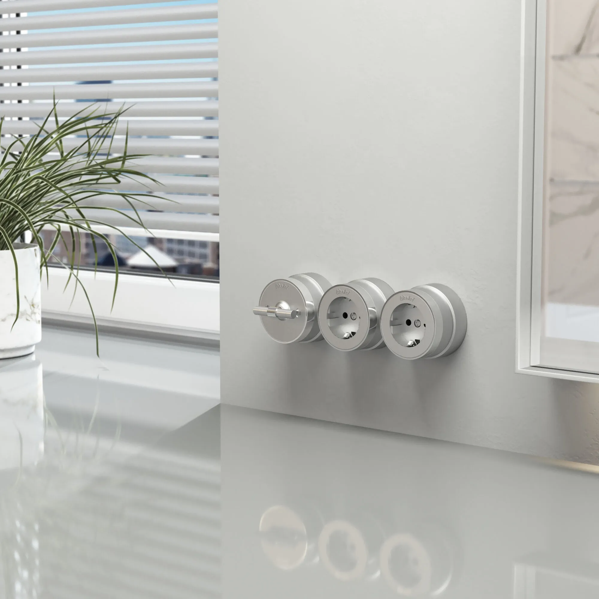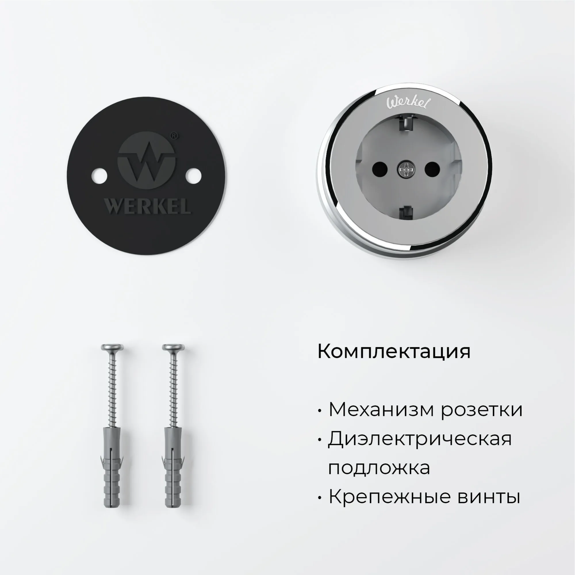 Дополнить образ помогут рамки Werkel из металла, стекла, и дерева, а так же аксессуары для накладного монтажа проводки.