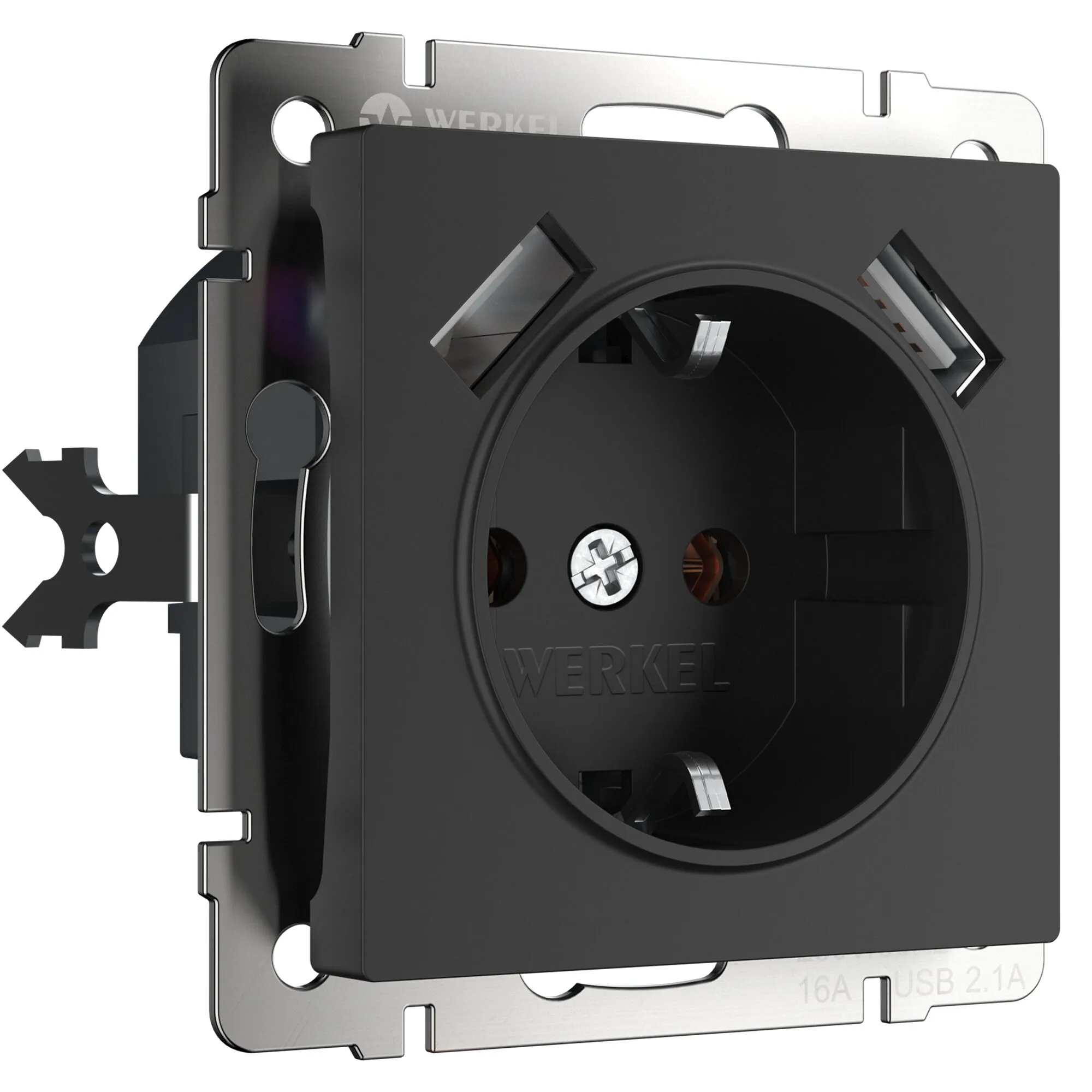 Розетка с заземлением, шторками и USBх2 (черный матовый) W1171508