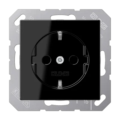 Розетка с заземлением 16А 250В A Flow черный глянцевый A1520SW Jung