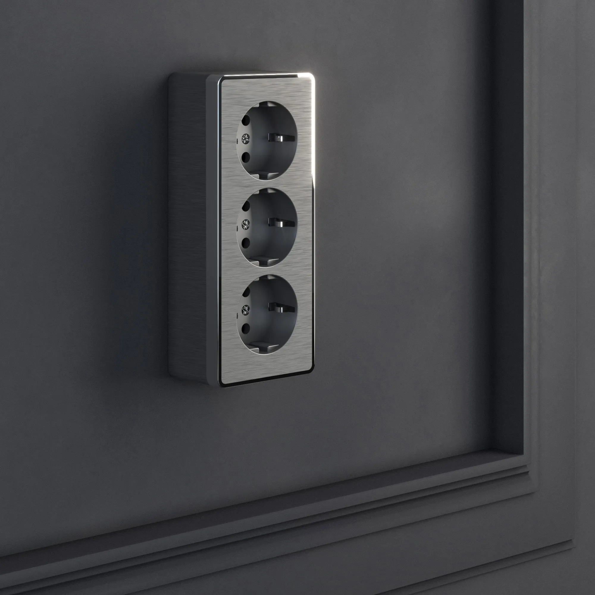 Розетка тройная с заземлением и шторками Gallant (графит рифленый) W5073104