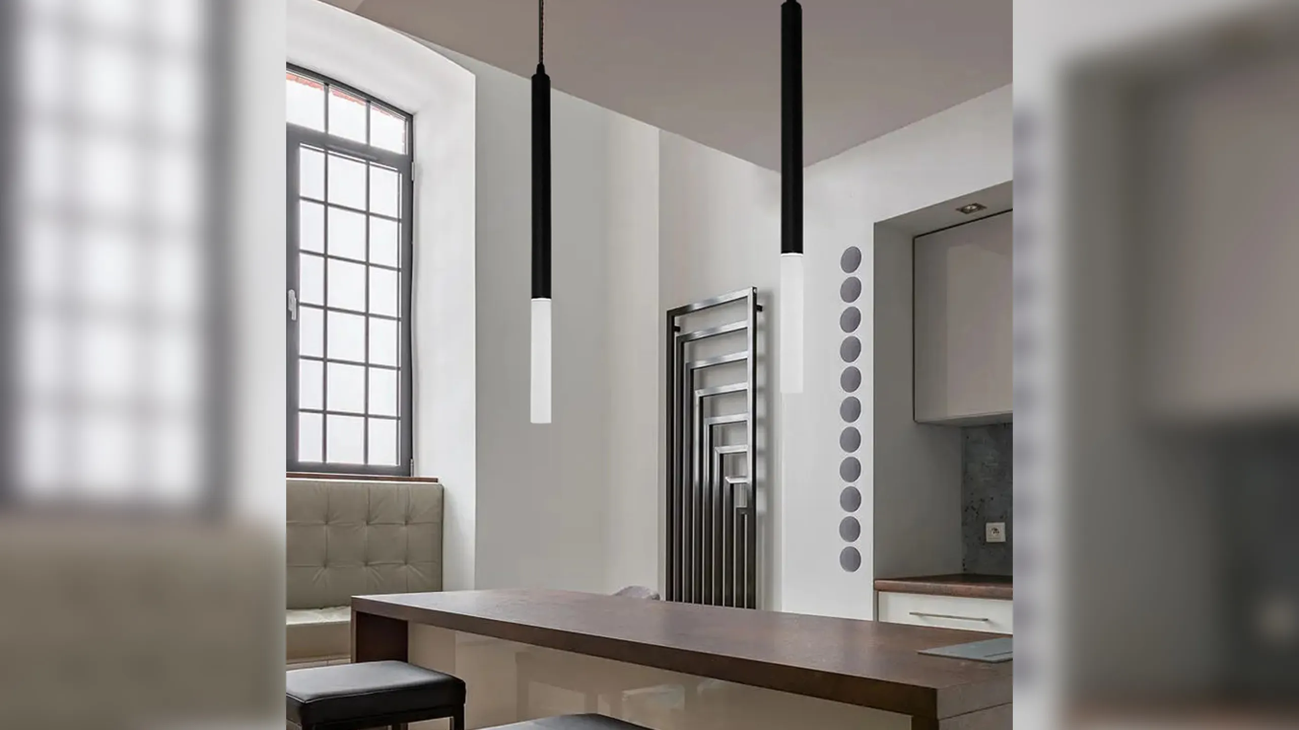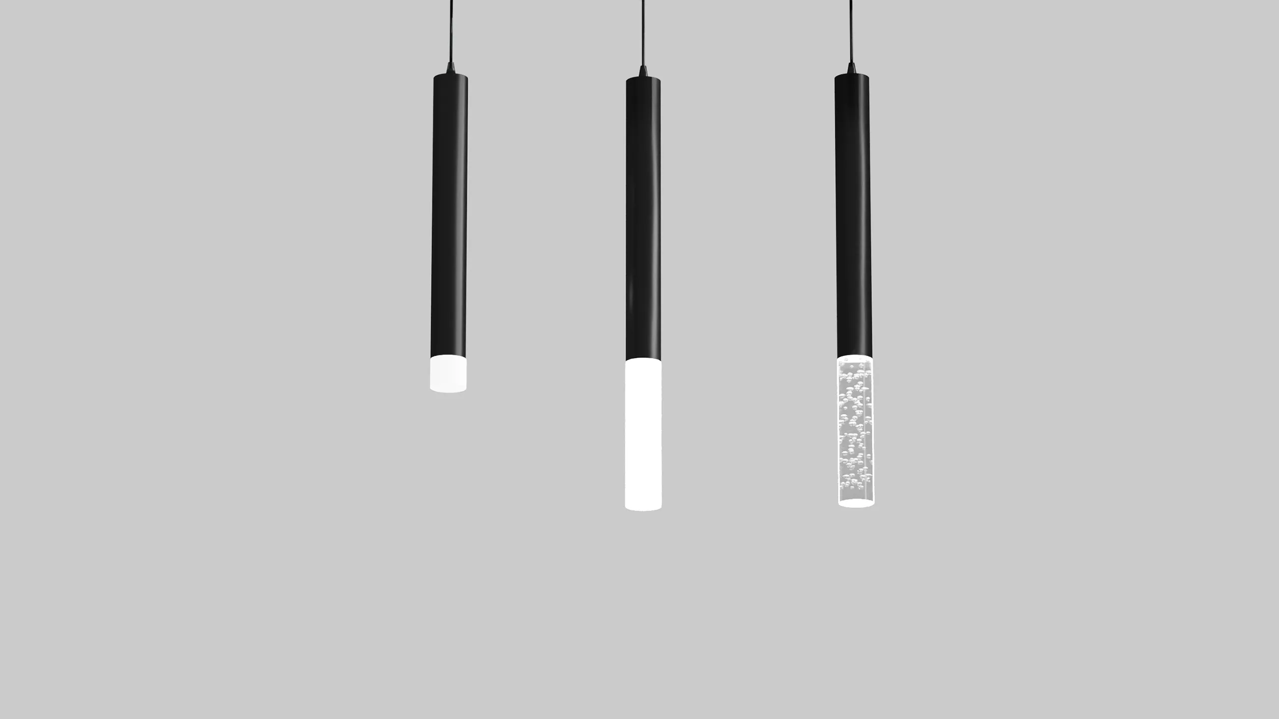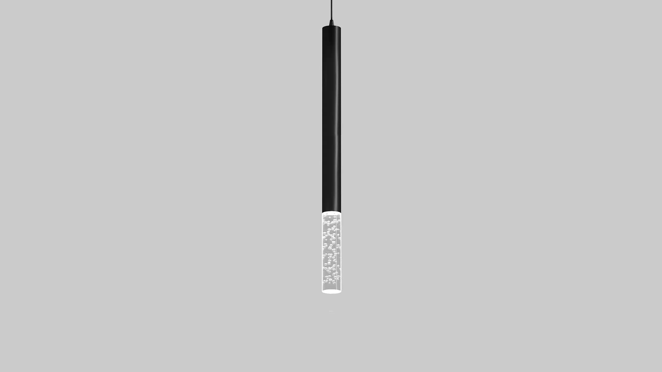 Миниатюрный подвесной светильник, диаметр всего 3 см. Идеален для подсветки  отдельных предметов интерьера. Рассеивающий стержень наполнен пузырьками воздуха,  что добавляет декоративный эффект светильнику. Длина AL корпуса 400мм, стержня 100мм, потолочная чаша в комплекте
