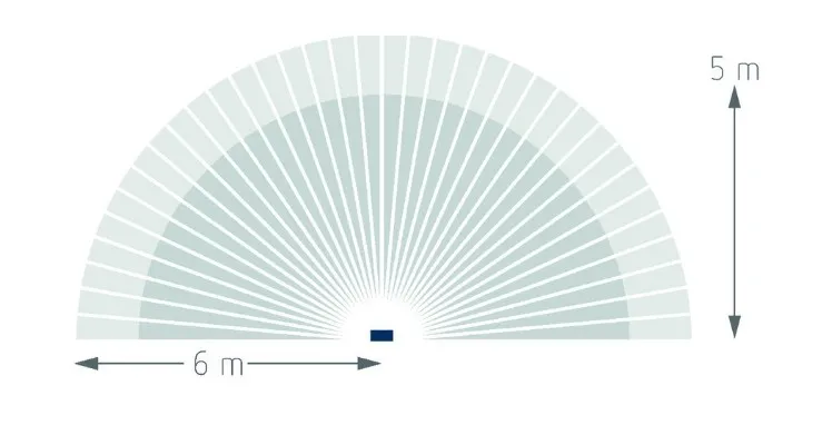 - Угол зоны обнаружения 180°, дальность обнаружения 6 м