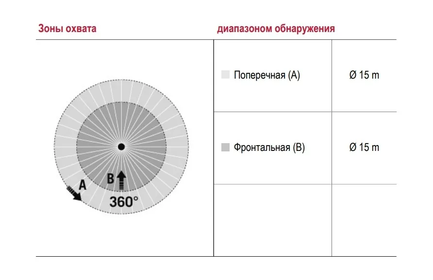| диапазоном обнаружения Фронтально | Ø 15 м |