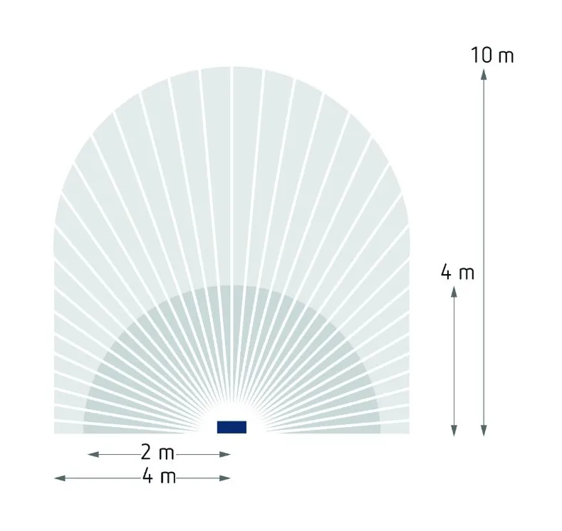 - Угол зоны обнаружения 180°, дальность обнаружения 10 м