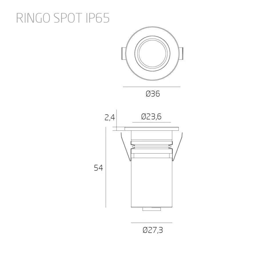 1 Ringo.Spot.IP65.3 URG<19, RA>90, IP65, внешний источник тока IP44, 15°/25°/40° 3 Вт 435 Лм 4000K/3000K d36*54мм