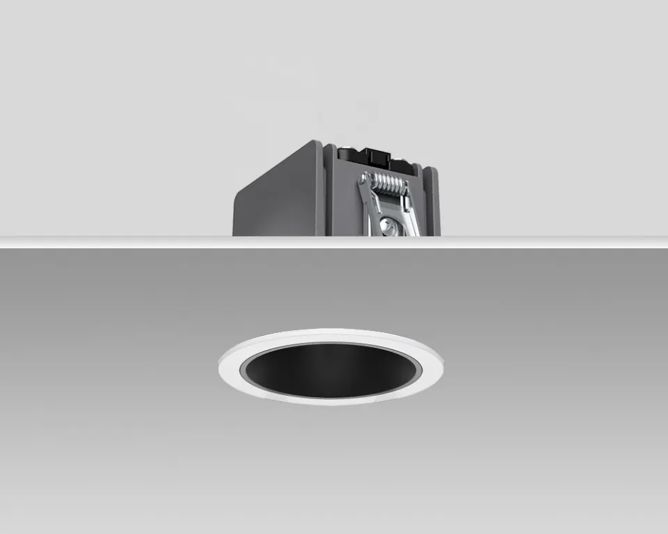 Классические встраиваемые точечные светодиодные светильники круглого сечения.