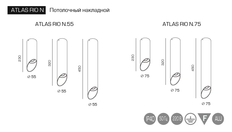 | 2 | ATLAS RIO N50.200.10 | - | 10 Вт | 1300 Лм | 3000K / 4000K / 5000K | d50*200 |