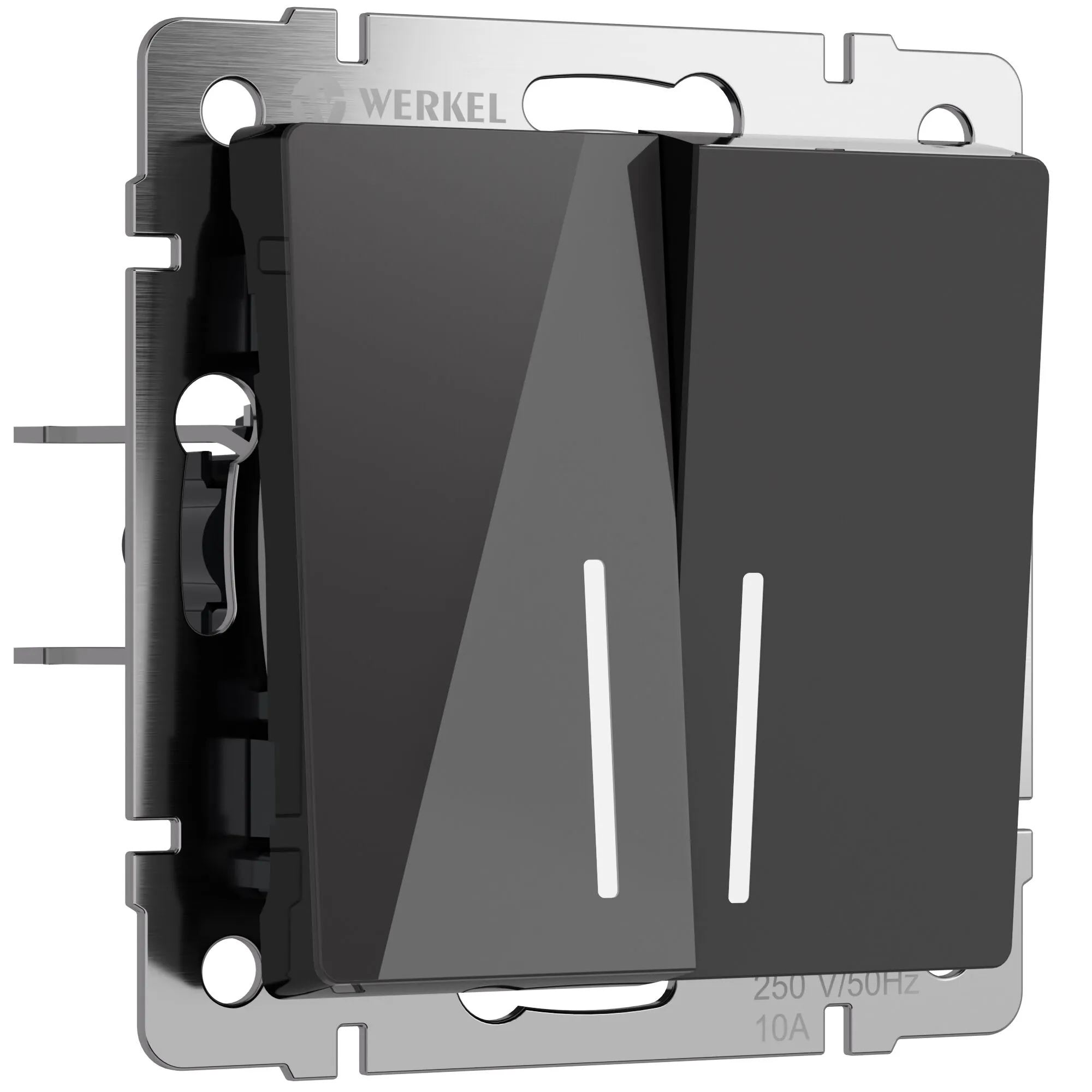 Выключатель двухклавишный проходной с подсветкой (черный акрил) W1122148