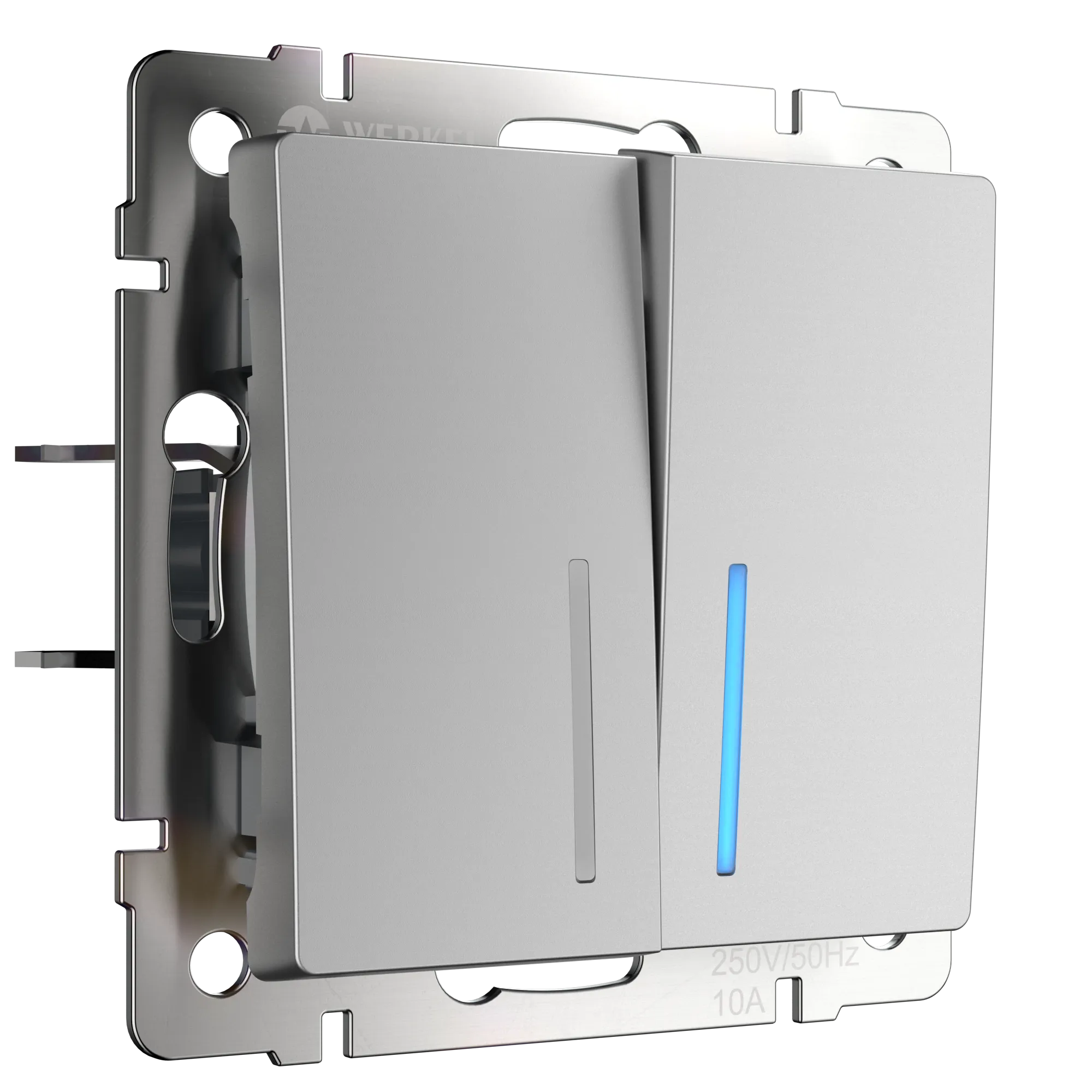 Выключатель двухклавишный проходной с подсветкой (серебряный) W1122106